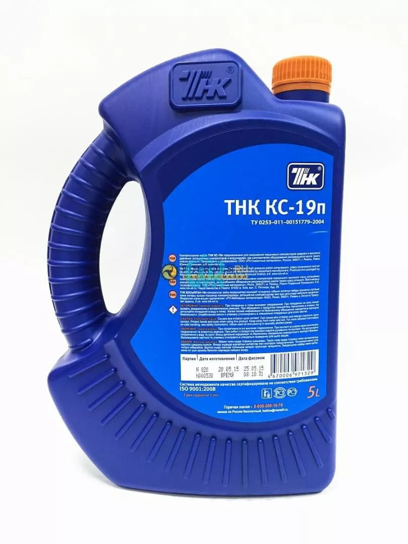 КС-19п — минеральное высококачественное компрессорное масло. Предназначено для смазывания маслозаполненных поршневых компрессоров. Масло содержит высококачественные базовые масла-компоненты, полученные с помощью селективной очистки, которые придают хорошие антиокислительные свойства, а высокоэффективная композиция присадок, снижает образование отложений и нагара в нагнетательной линии компрессора, обеспечивая высокие эксплуатационные свойства.